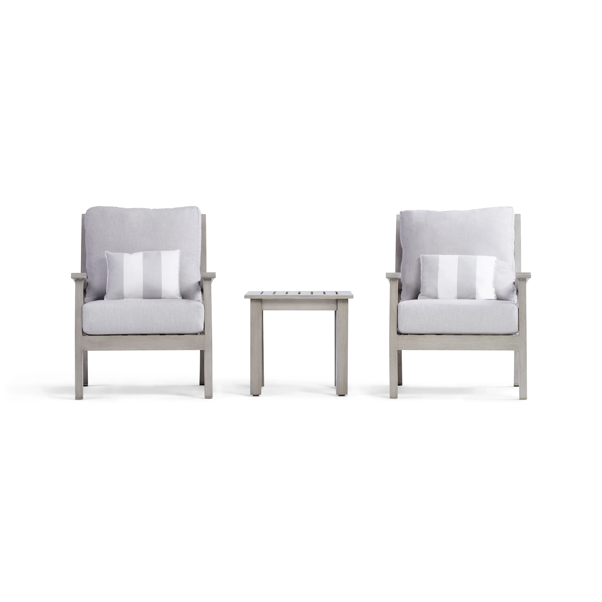 This set includes 2 Eden Fixed Chairs and an Eden Side Table.